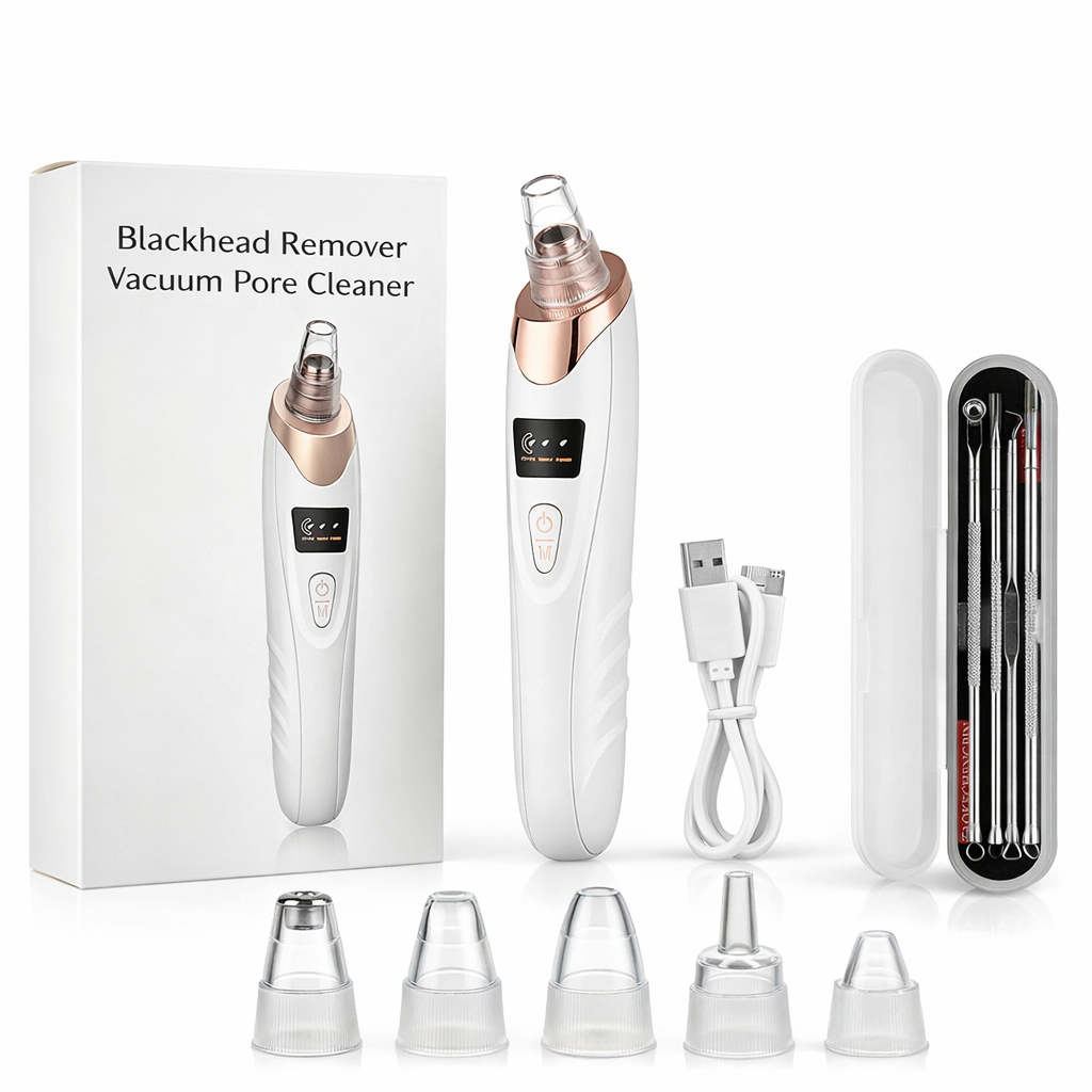 - 😌 Elimina puntos negros, acné y granos con potente succión al vacío, sin dolor ni irritación.